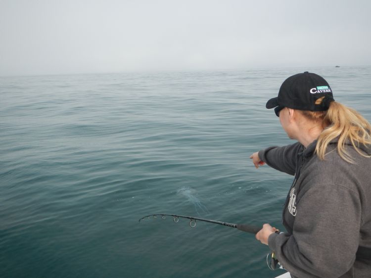Here's one of those jellyfish that gave us so much trouble salmon fishing. Not today as it was a great day on the rockfish grounds. 8-27-14